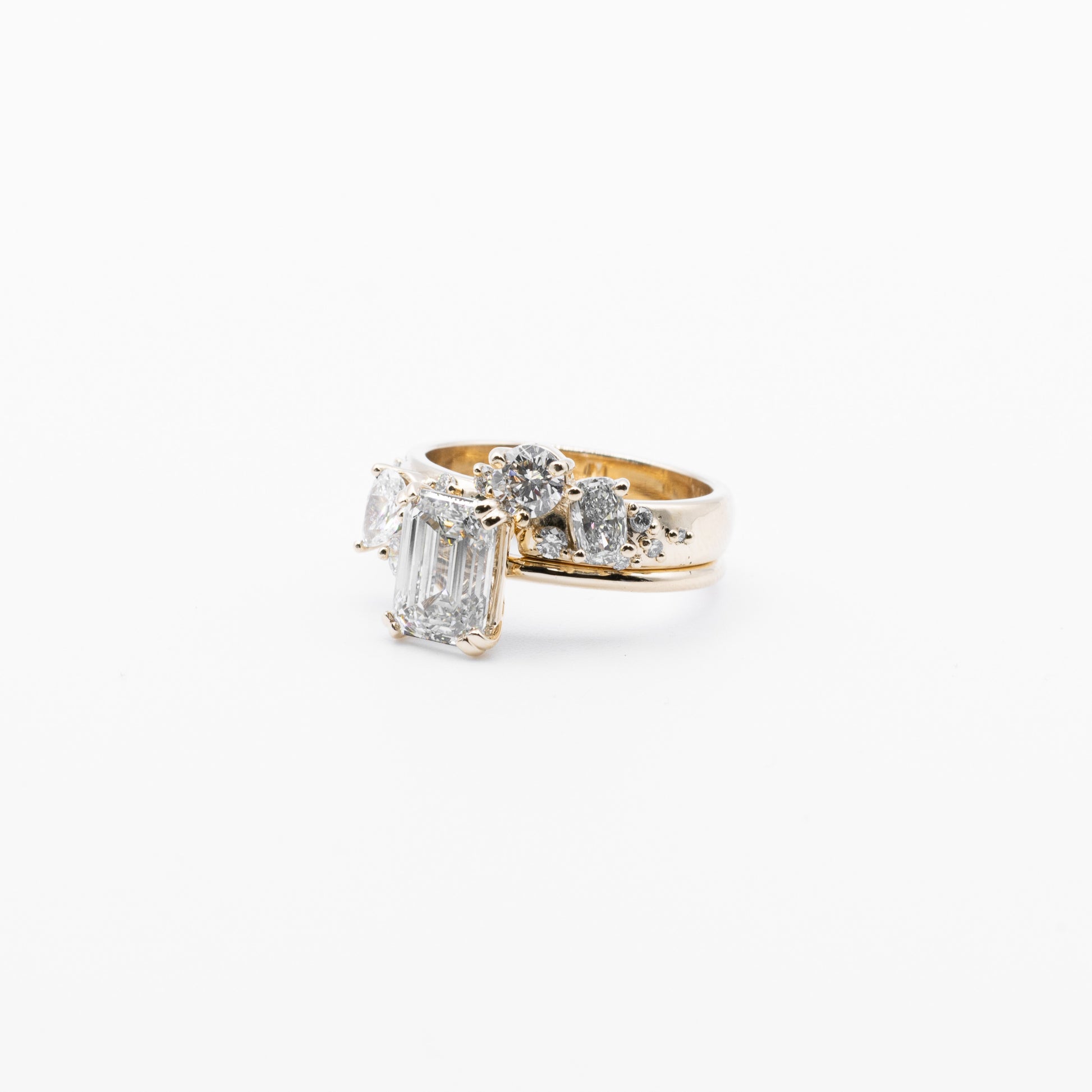 Set of two rings, solitaire and wedding band