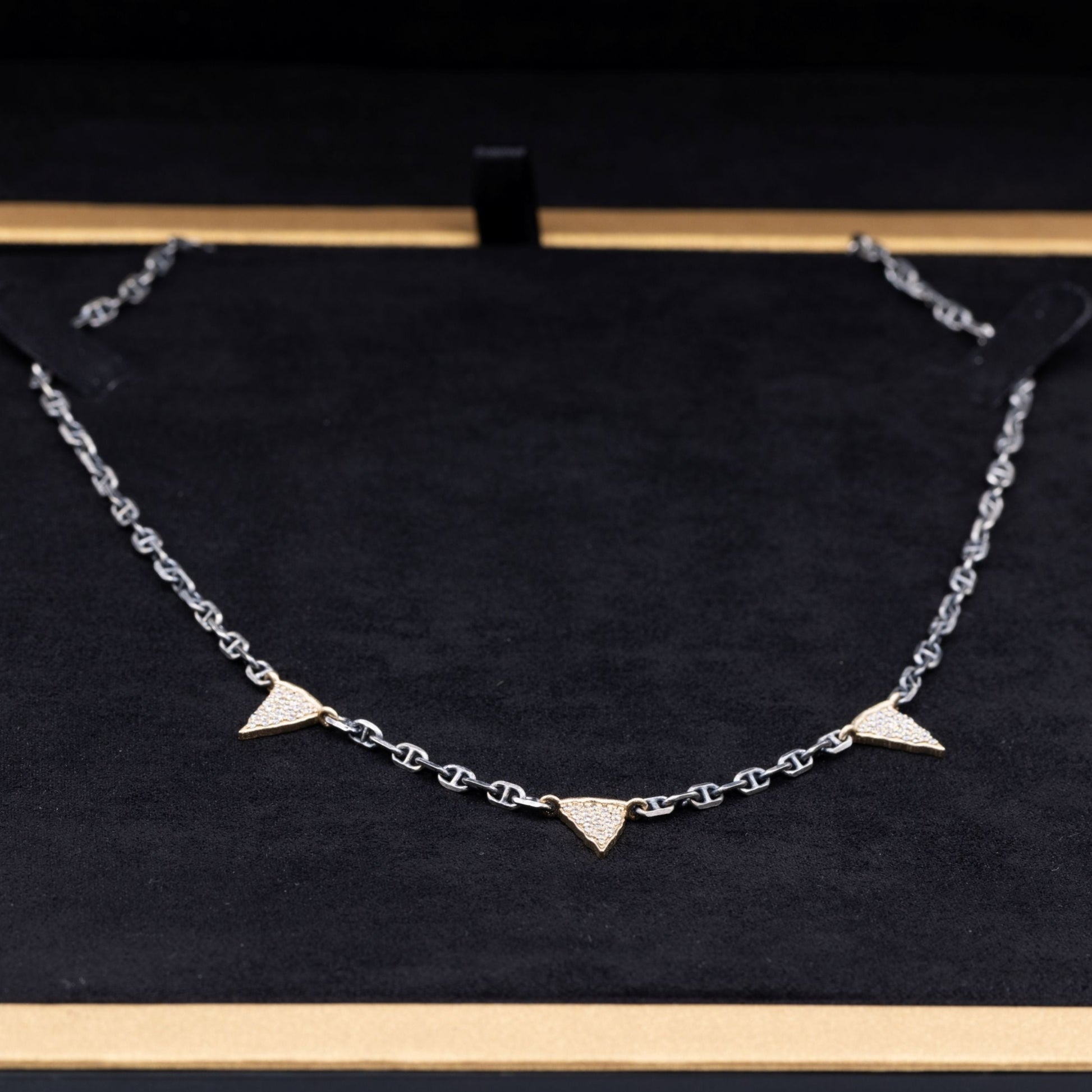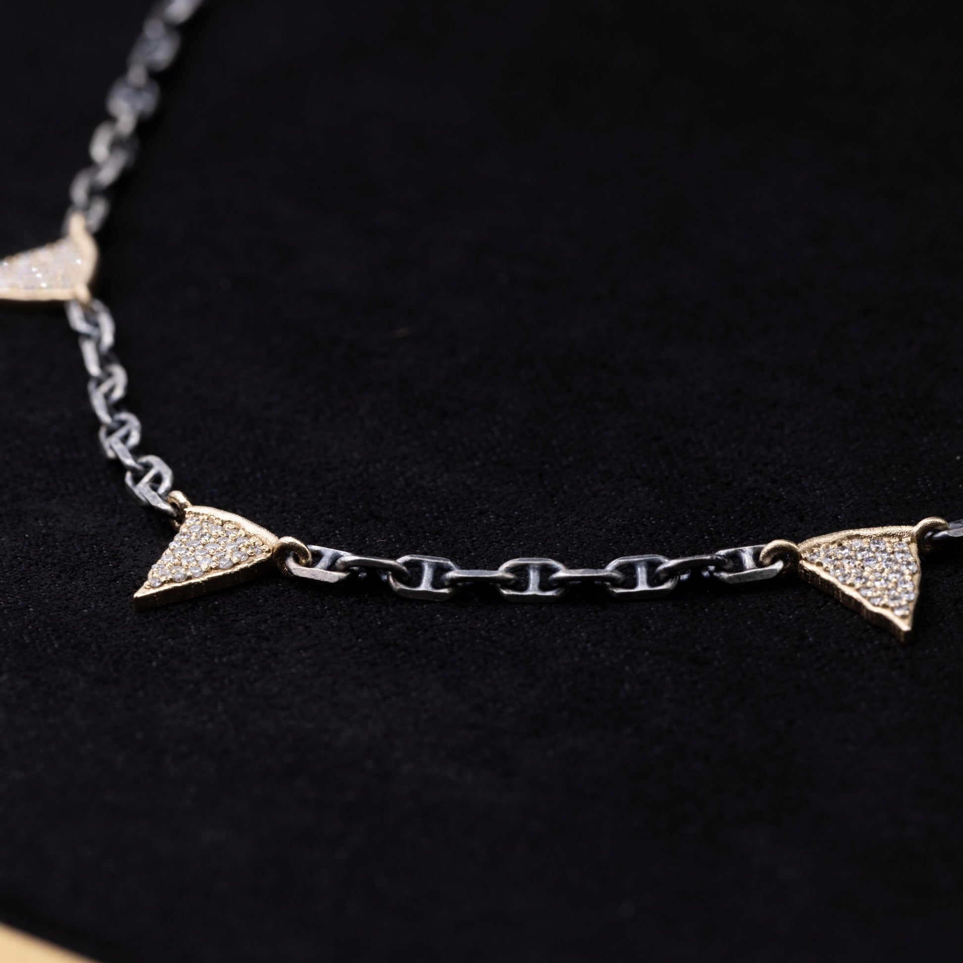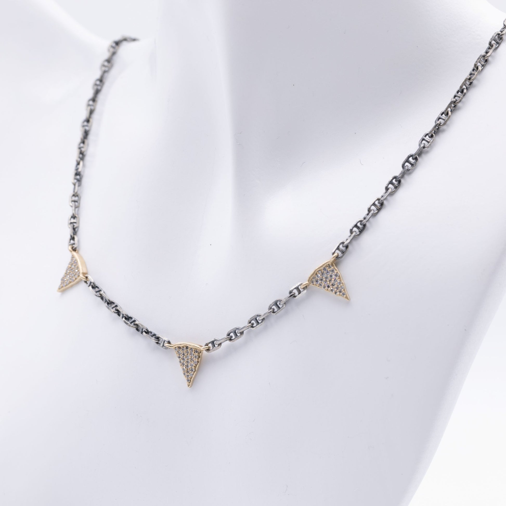 Trio 14K & 925 Sterling Diamond Pizza Charcoal Necklace